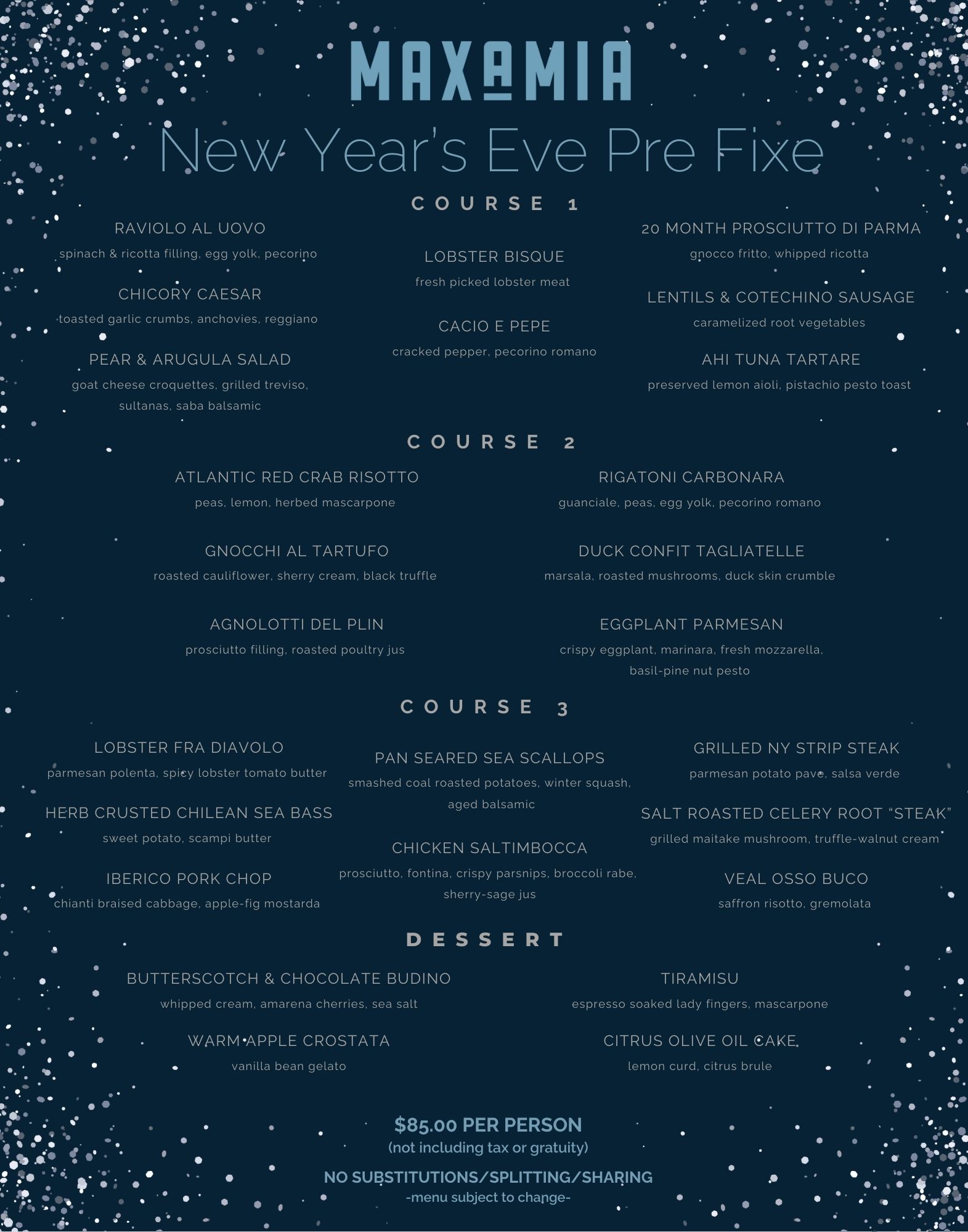 Comments, suggestions, compliments and complaints can be emailed to our General Manager, Liz Guarino, at eguarino@maxamiaristorante.com.